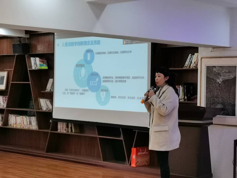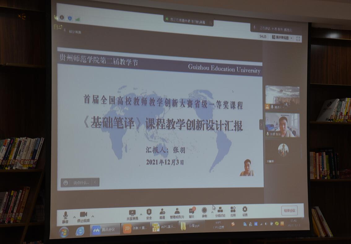 外国语学院张羽老师以《首届全国高校教师教学创新大赛省级一等奖课程<基础笔译>教学创新设计汇报》为题,结合笔译课程教学实际,先后从课程理念创新、教学方法创新、教学评价创新、教学成果展示等方面分享了教学创新成果报告撰写的经验。
