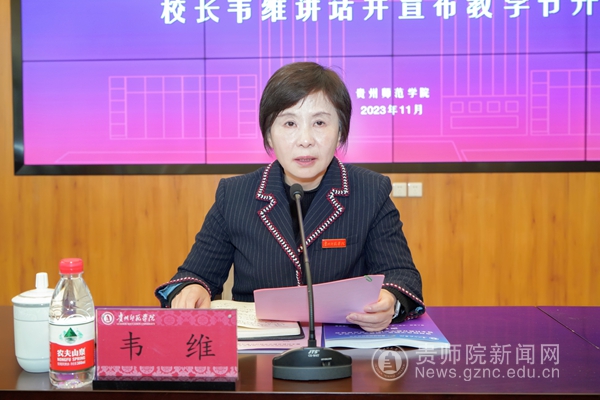 韦维以《知势而为、反躬自省,不断坚定教书育人教育报国的使命担当》为题作总结讲话。她表示,在省委巡视整改工作和本科教育教学审核评估整改工作的“攻坚期”,聚焦全省高等教育高质量发展大会精准发力的“风口期”和学校申硕攻坚战的“总攻期”,本次会议意义重大,这既是“部署会”、“动员会”,也是“汇报会”和“群英荟”。希望全校师生能通过教学节深入交流互鉴,共同为学校教育教学高质量发展提供新思路,为“四有师院”建设添砖加瓦,为推进教育强国建设贡献师院智慧和力量。