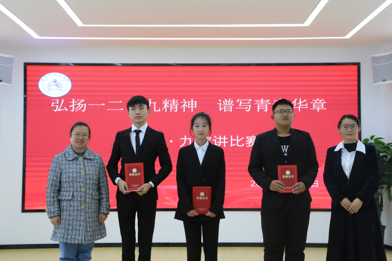在经历了前期初赛、复赛的激烈角逐后,共有11名同学成功晋级决赛。现场,选手们精神饱满、斗志昂扬,评委们全神贯注、一丝不苟。选手们以激昂的文字与似火的热情,歌颂八十六年前的爱国青年,讲述一份又一份的楚囊之情、赤胆之心,让人仿佛身临其境,感受着战争年代的风云变幻。他们结合自己的学习、生活和实践经历,紧密围绕比赛主题,通过质朴的语言、真挚的情感,将“一二•九”运动紧密联系祖国的发展,与祖国同呼吸共命运,面对新的挑战,鼓足勇气,脚踏实地,胸怀远大,勇于进取,用青春奋斗去谱写华丽篇章。比赛现场精彩纷呈,现场掌声不断。