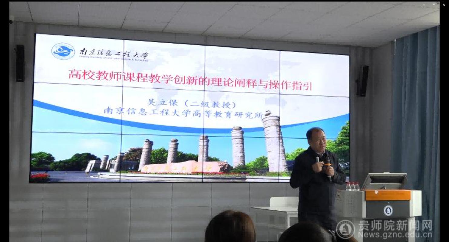 为全面提升教师的教育教学能力与水平,助力广大教师深入理解并聚焦教学创新,精准把握大赛要求,高效完成赛前准备,作为我校第四届教学节“崇尚教学 树立中心”主题的重要活动之一,2025年12月5日下午,贵州师范学院在综合实训楼502教室成功举办了第六届教师教学创新大赛训练营专题讲座。本次讲座特邀南京信息工程大学高等教育研究所所长吴立保研究员和陕西科技大学林营教授担任主讲嘉宾。